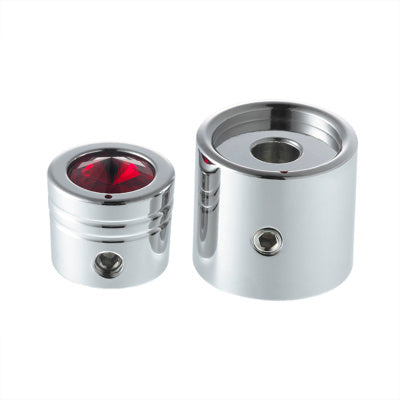 CB Knob On/Off/Volume/Squelch Knob with Red Crystal. Chrome Plated. Fits various years and models.