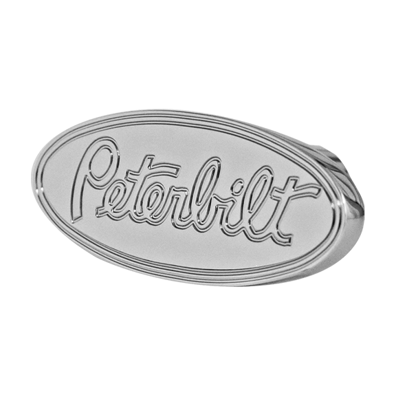 Chrome Peterbilt Oval Shape Brake Knob. Sold Individually.