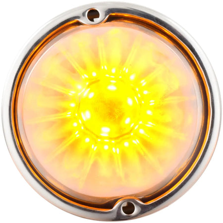 Grand General Classic Glass Lens Clear Amber LED Watermelon Light. 18 High Power LED's. Dual Function (3 wire). Old school glass lens appearance with a LED brightness that offers a unique pattern shine. LED plate is water sealed.