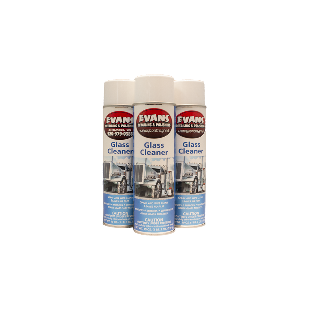 All the things you come to expect from an Evan’s product. This is a streak free and tint safe glass cleaner. We use it on all of our glass at the shows and we even use it to remove bugs off the aluminum grills on Peterbilts and mirrors. The product works great and comes in a nice aerosol can. Easy to use. Spray on and Wipe off.