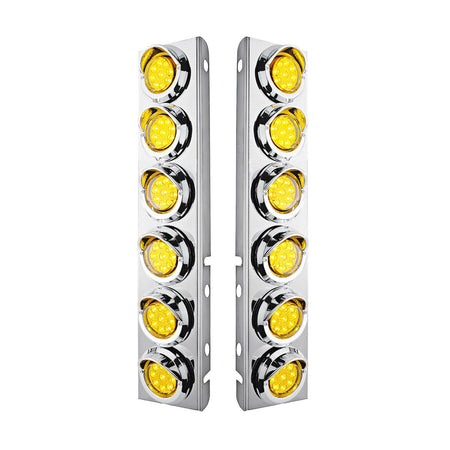 SS Front Air Cleaner Bracket With 12X 9 LED 2" Reflector Lights & Visors For Peterbilt-Amber LED & Lens