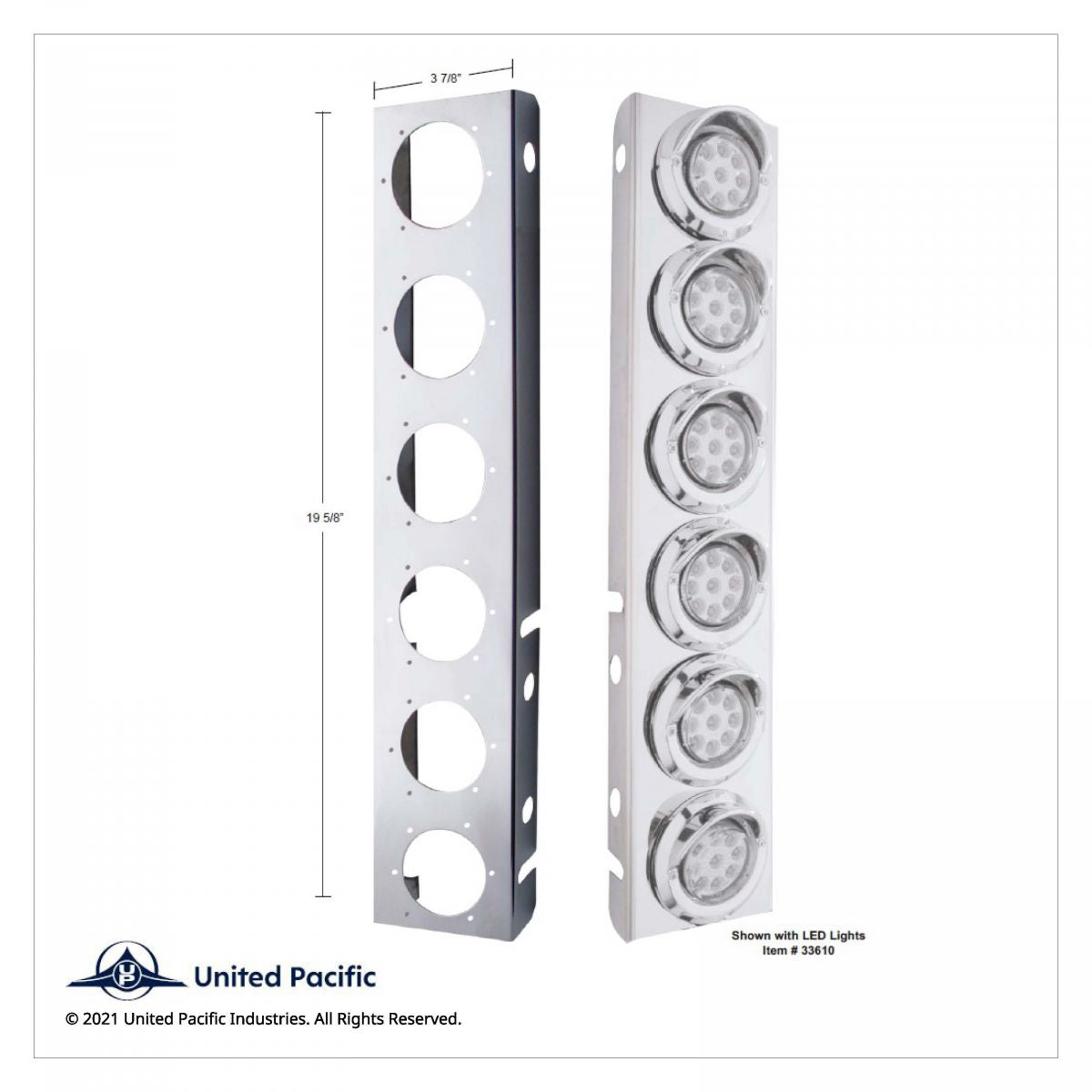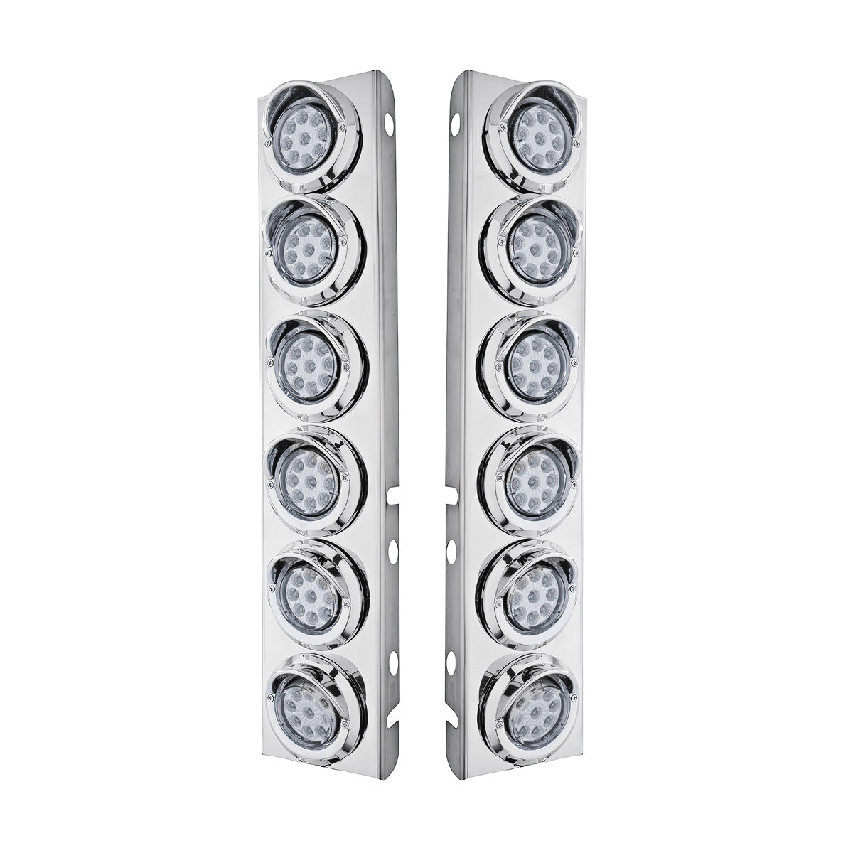 - Stainless steel Peterbilt front air cleaner bracket with 12X 2" LED lights.