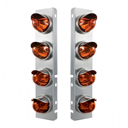 SS Front Air Cleaner Bracket With 8X Glass Watermelon Lights & SS Visors For Peterbilt-Dark Amber Lens