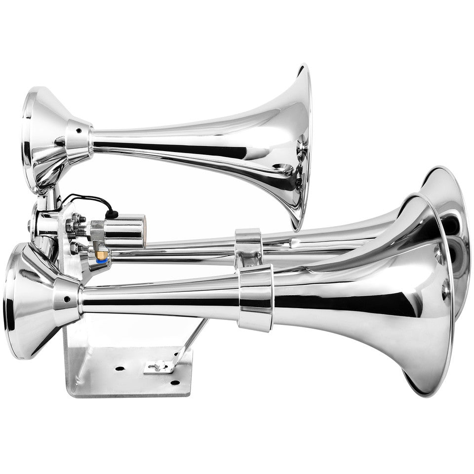 Features: Heavy duty train horn w/ true train horn sound at 140+ decibels. 12V/24V multi-voltage electric solenoid included