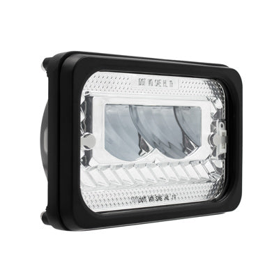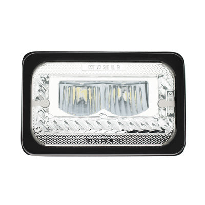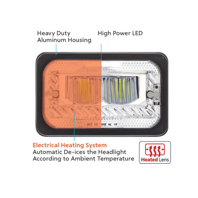 Heated 4" x 6" LED High Beam Headlight - Chrome. Features a heating system that automatically de-ices and defrosts the headlight lens. Integrated monitoring system to turn off heating when snow & ice has cleared from lens. Durable glass lens with heavy duty corrosion resistant aluminum housing. Resists shock and vibration. 1,200 LUMENS.