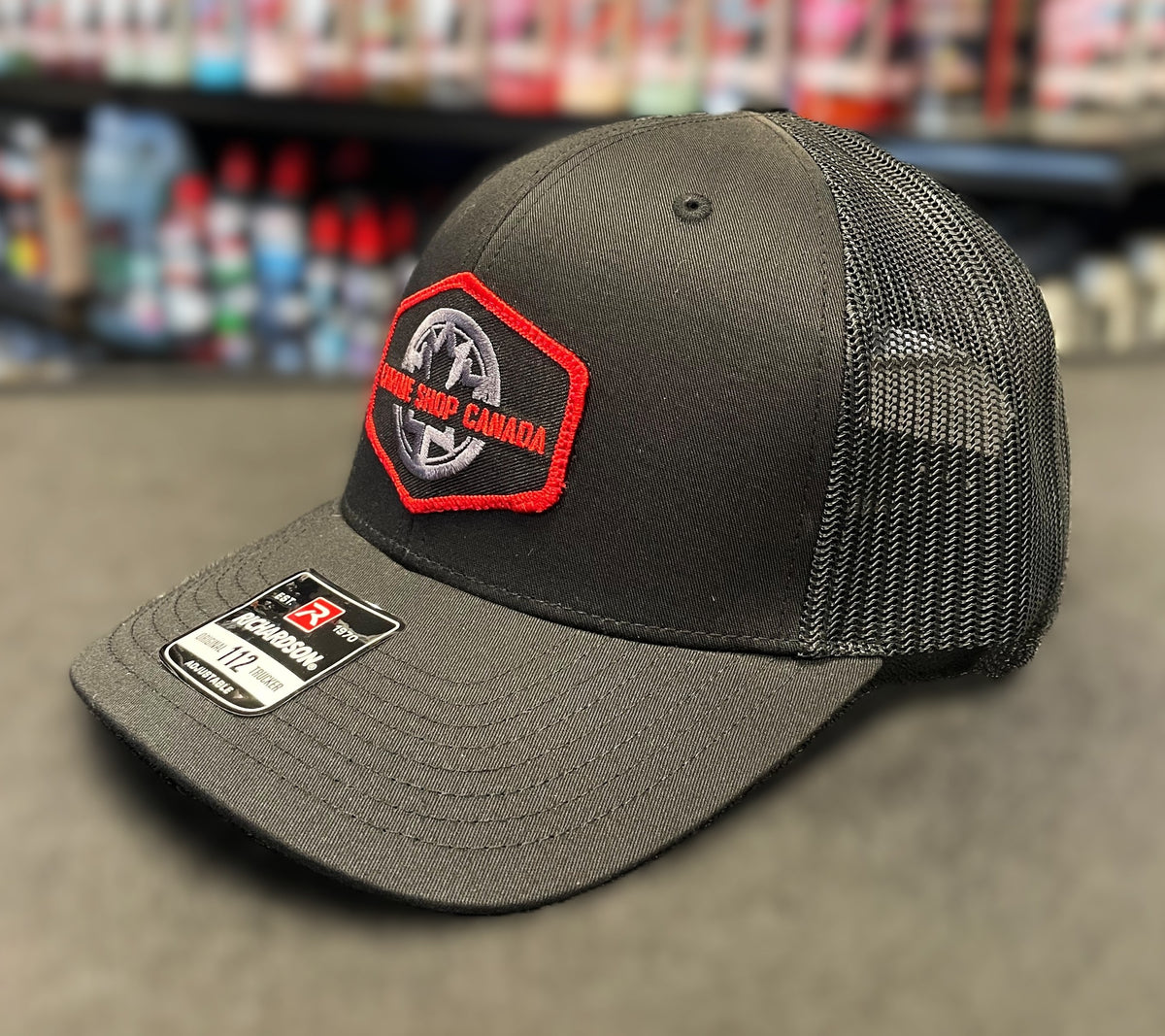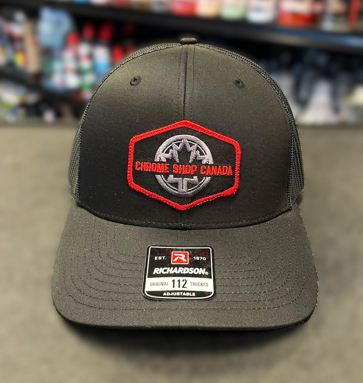 Chrome Shop Canada Patch Trucker Snapback Hat. Richardson 112 adjustable snapback. Mesh back. Black.
