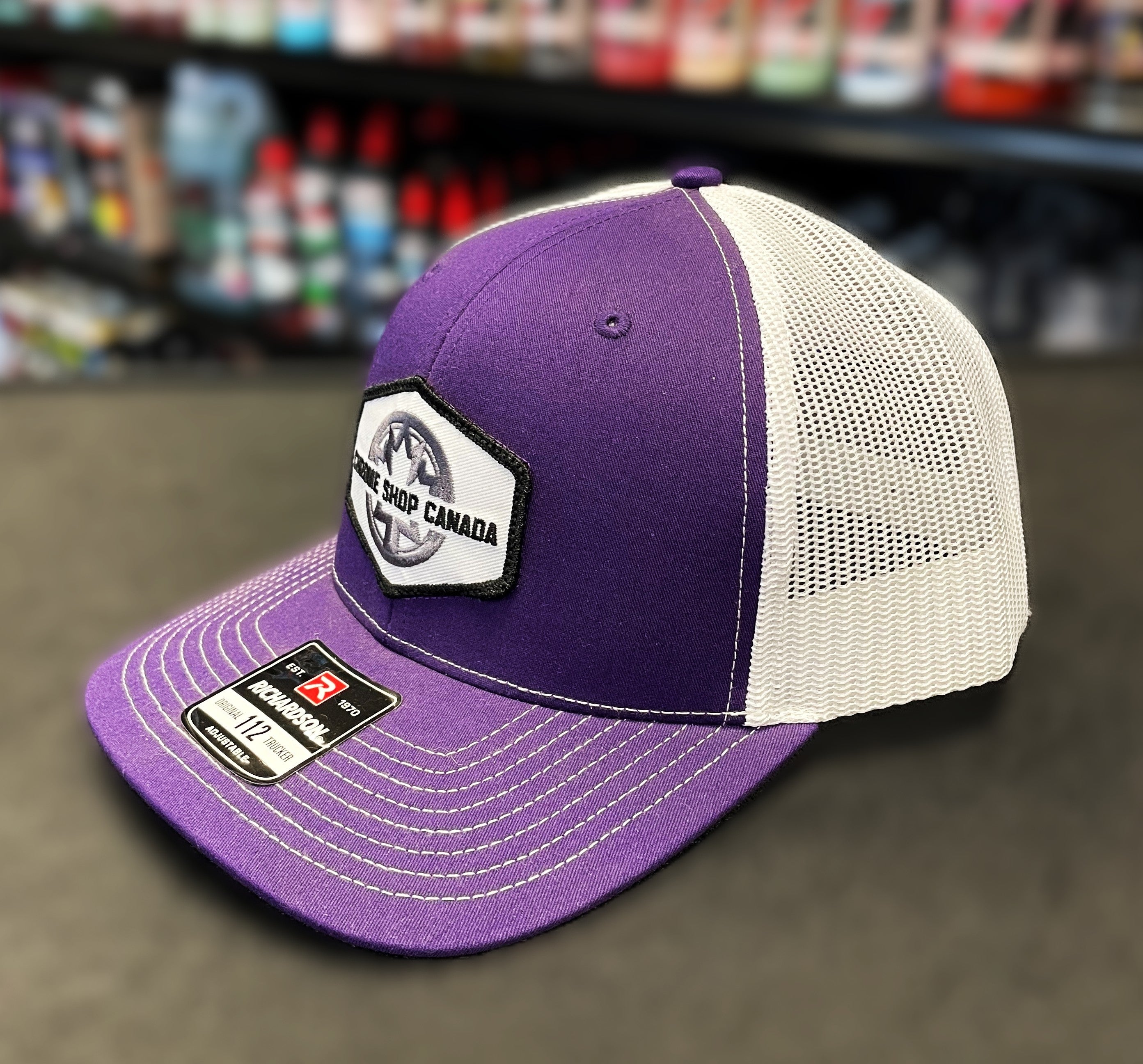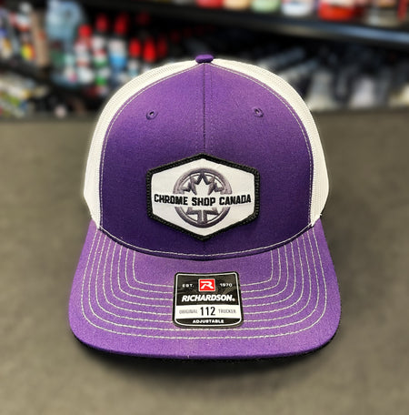Chrome Shop Canada Patch Trucker Snapback Hat. Richardson 112 adjustable snapback. Mesh back. Purple / White.